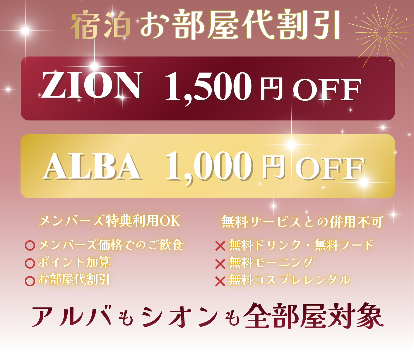 既にメンバーズの方は、メンバーズ特典部屋代割引のみ併用してご利用いただけます